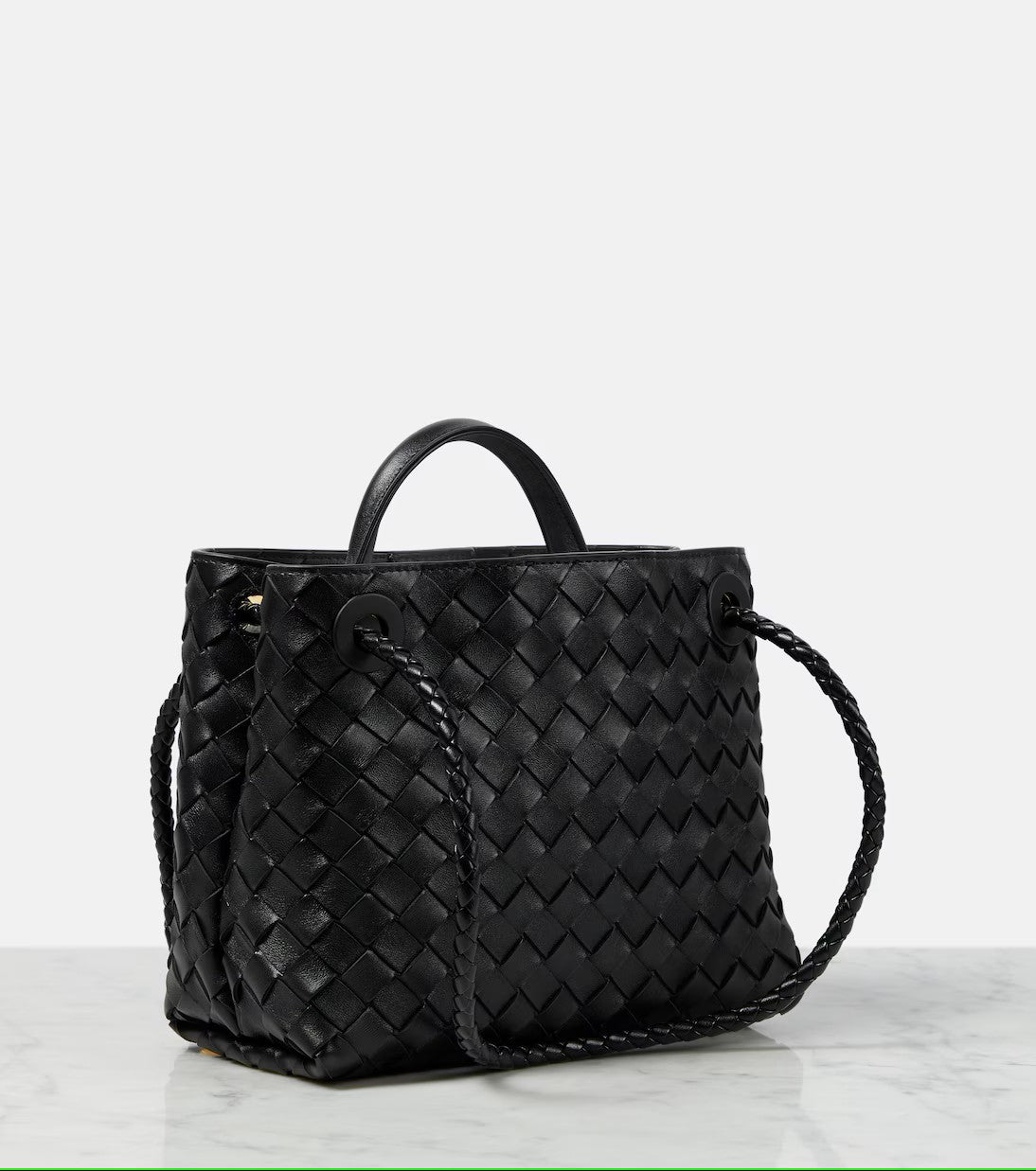 - Малка чанта с къса дръжка от кожа Intrecciato и плъзгаща се презрамка за рамо