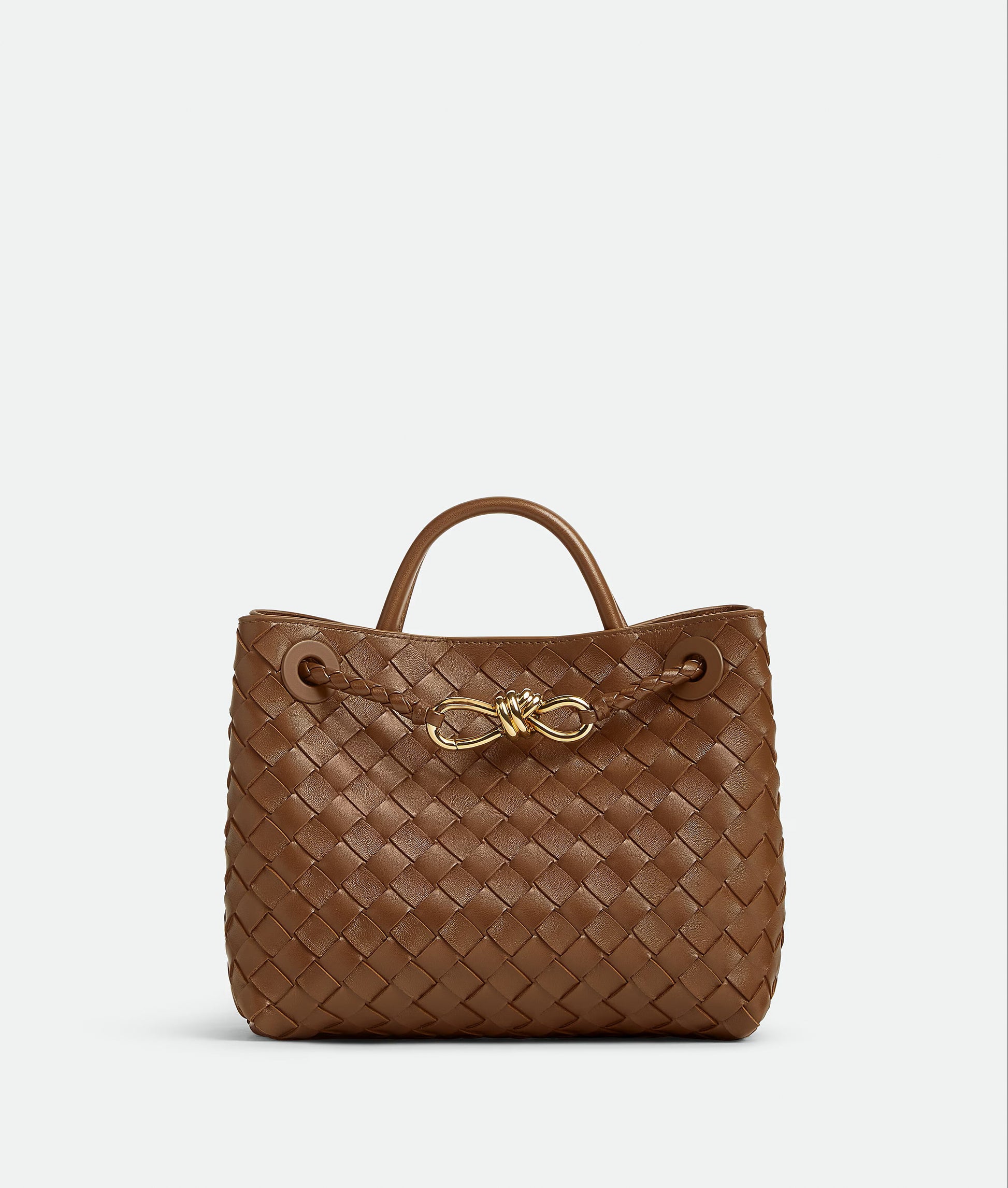 Чанта с къса дръжка от мека кожа Intrecciato с емблематичен възел и плъзгаща се презрамка за носене през рамо.