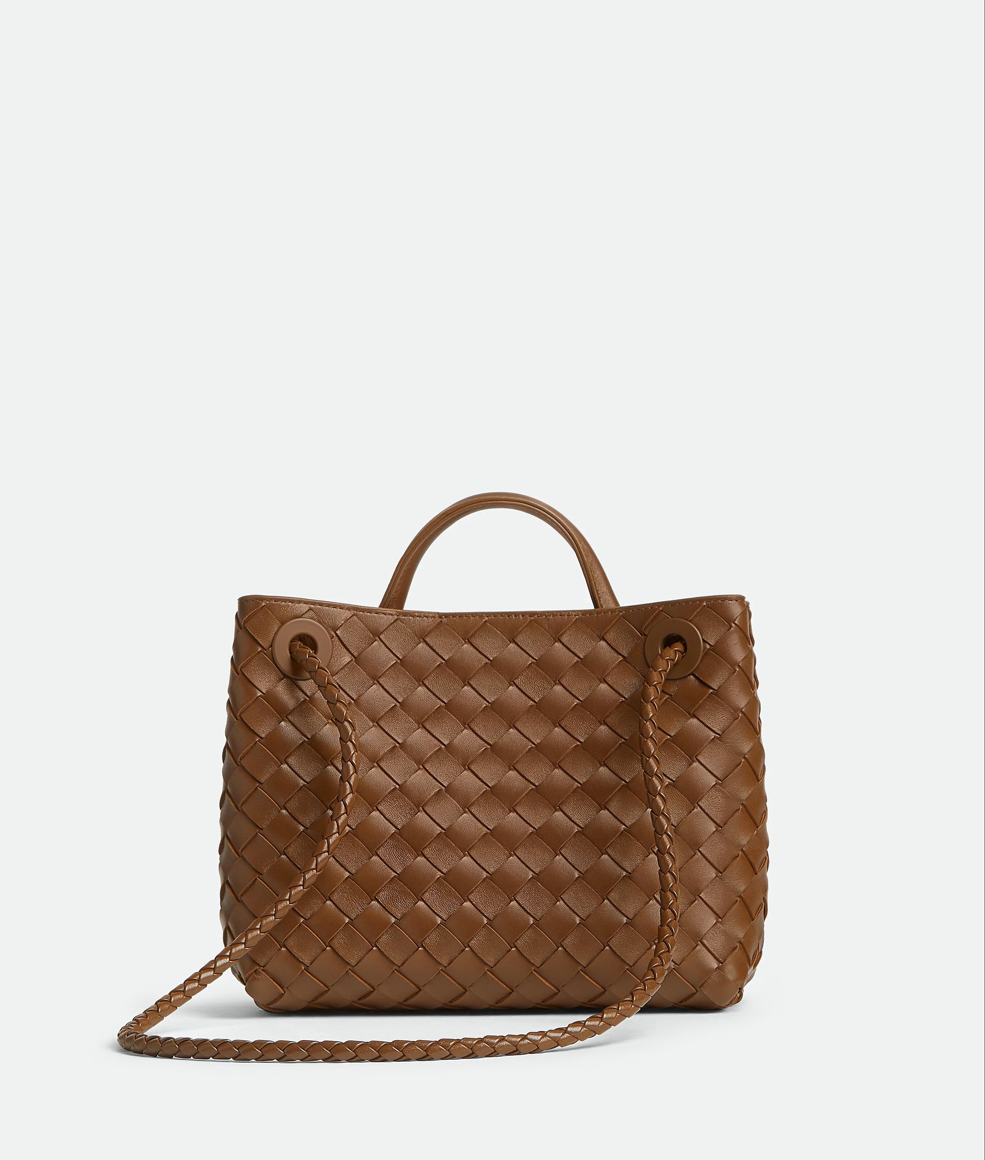 Малка чанта с къса дръжка от кожа Intrecciato и плъзгаща се презрамка за рамо