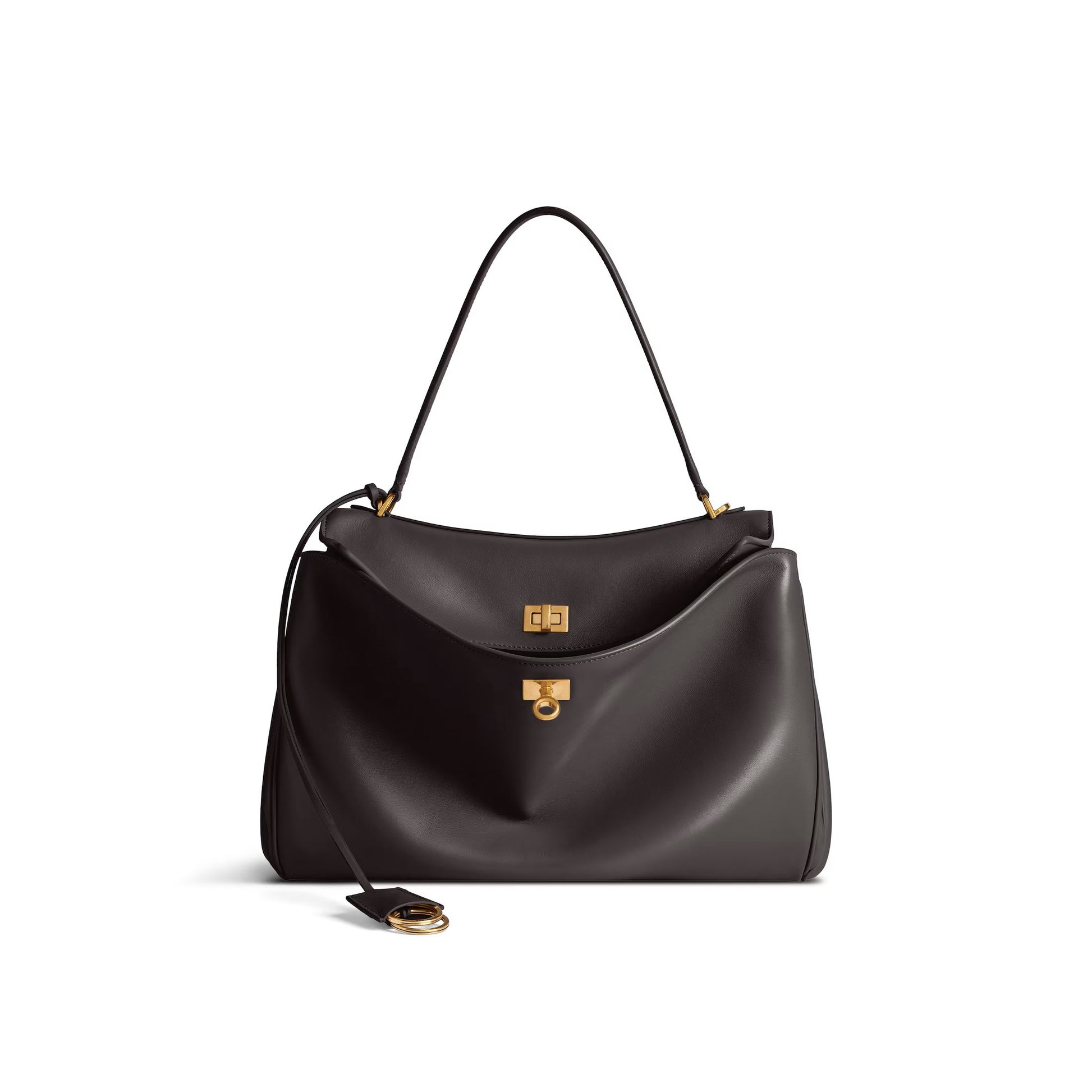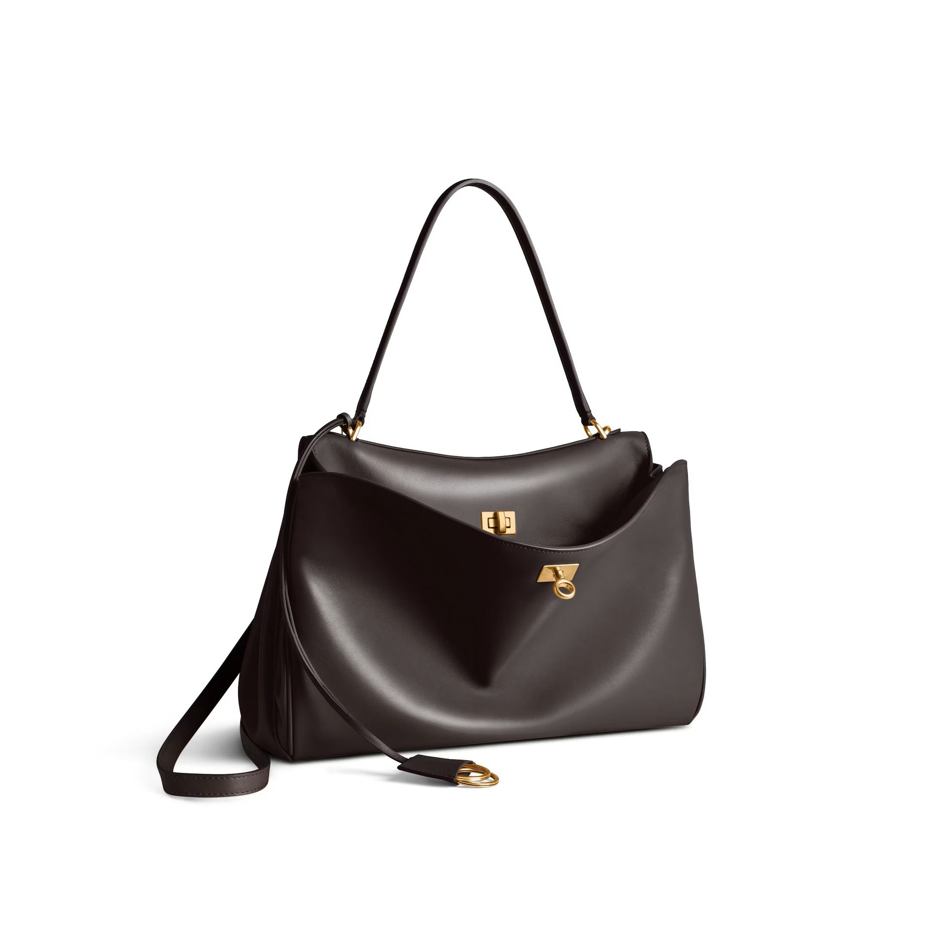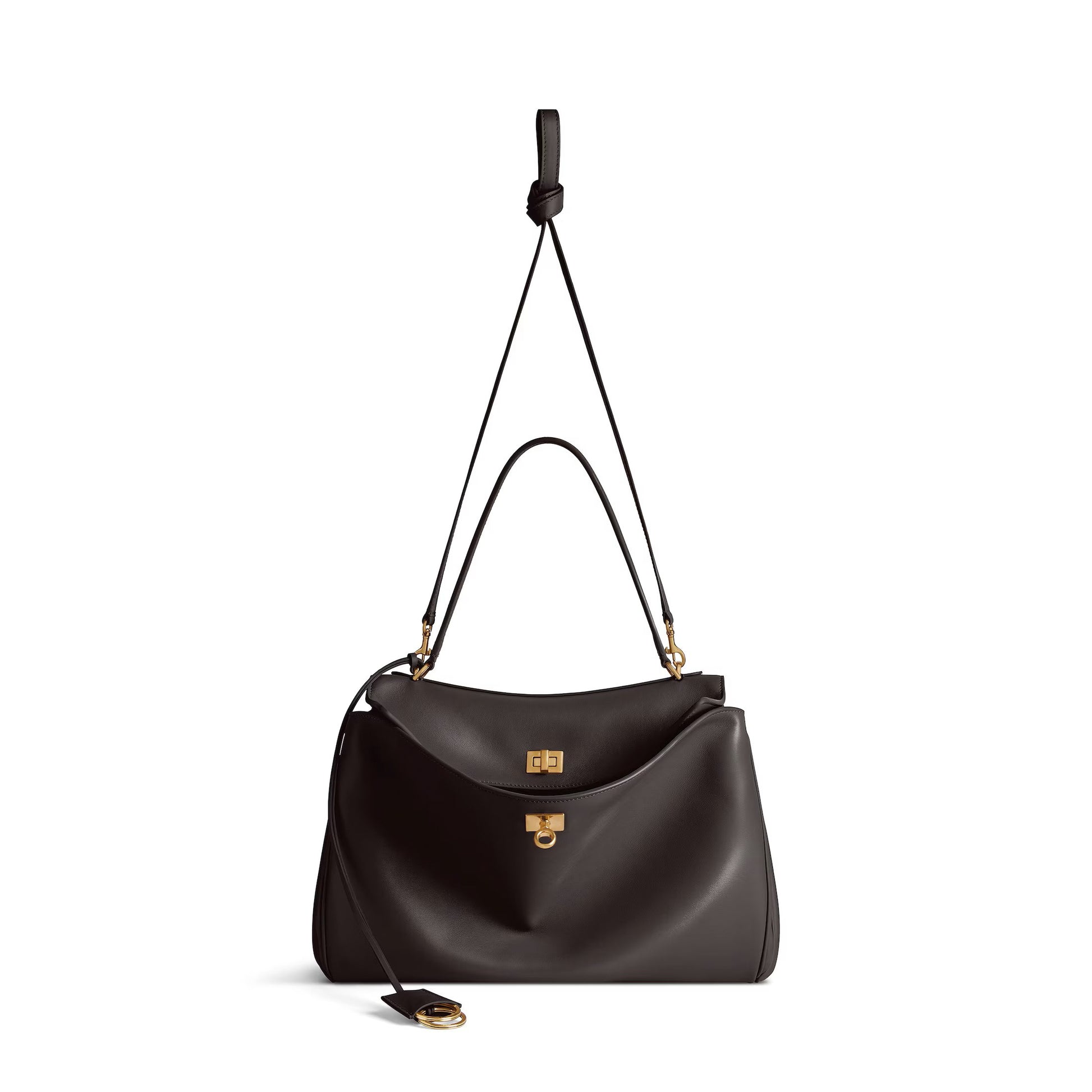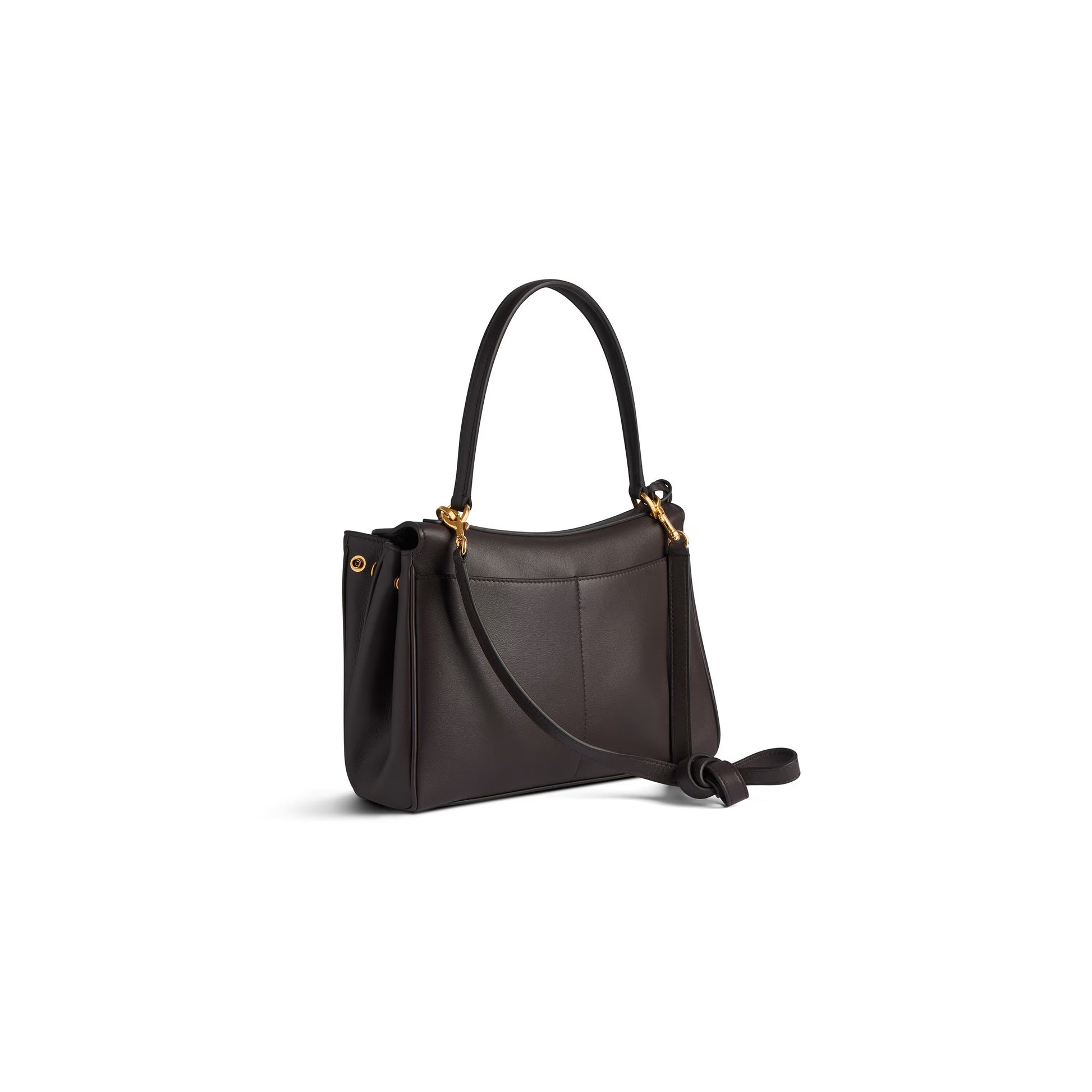 Чанта с къса и дълга дръжка от мека кожа в Тъмно Кафяво