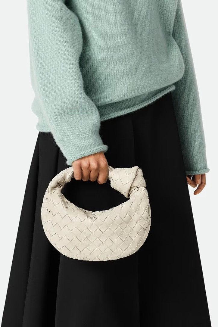 Мини чанта с къса дръжка от кожа с Intrecciato плетка